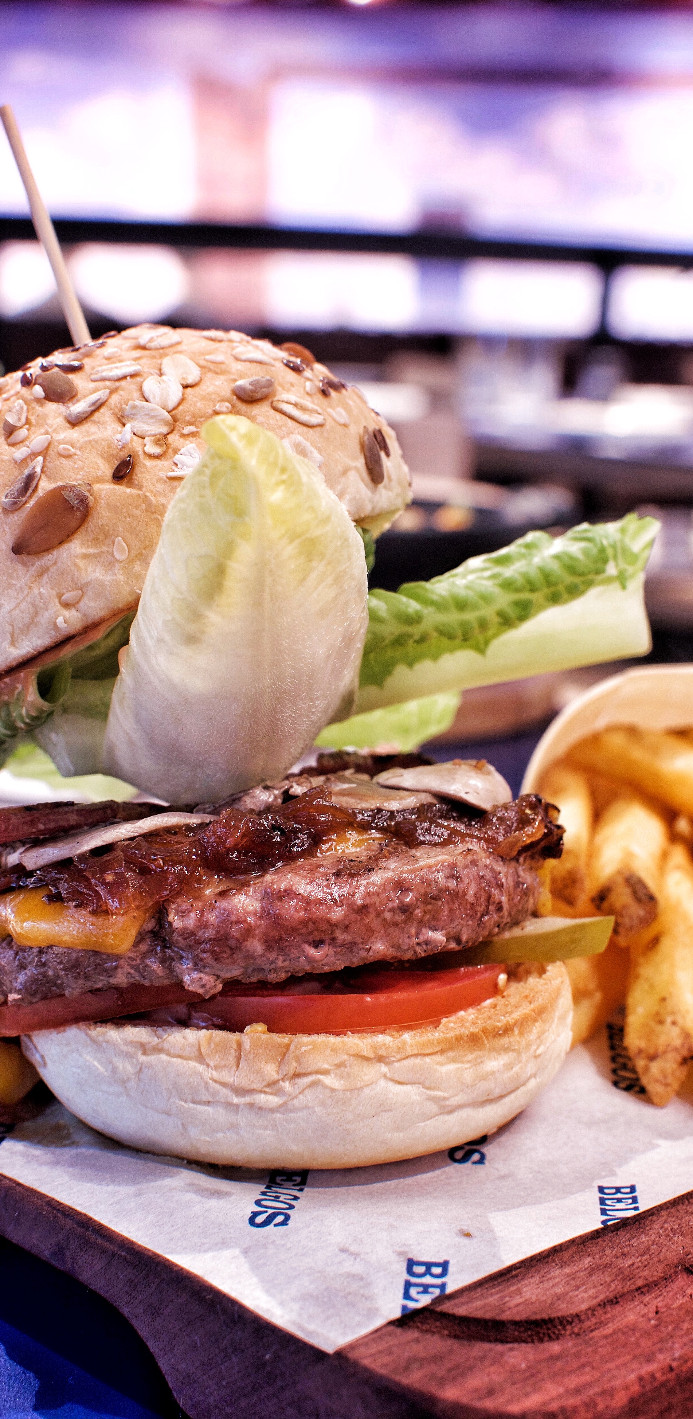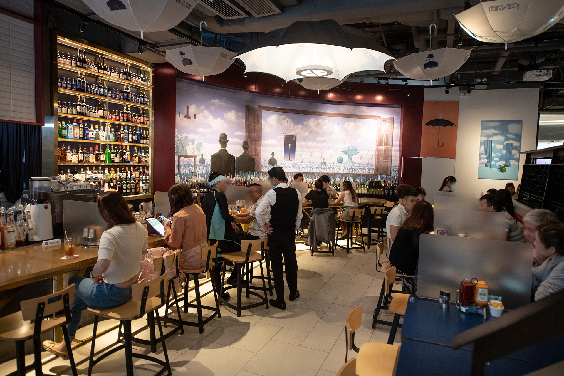 Belgos’s bar area is the perfect place for a relaxed get-together. Its drink list features over 30 premium Belgian beers, along with a large selection of spirits, cocktails and carefully chosen wines.